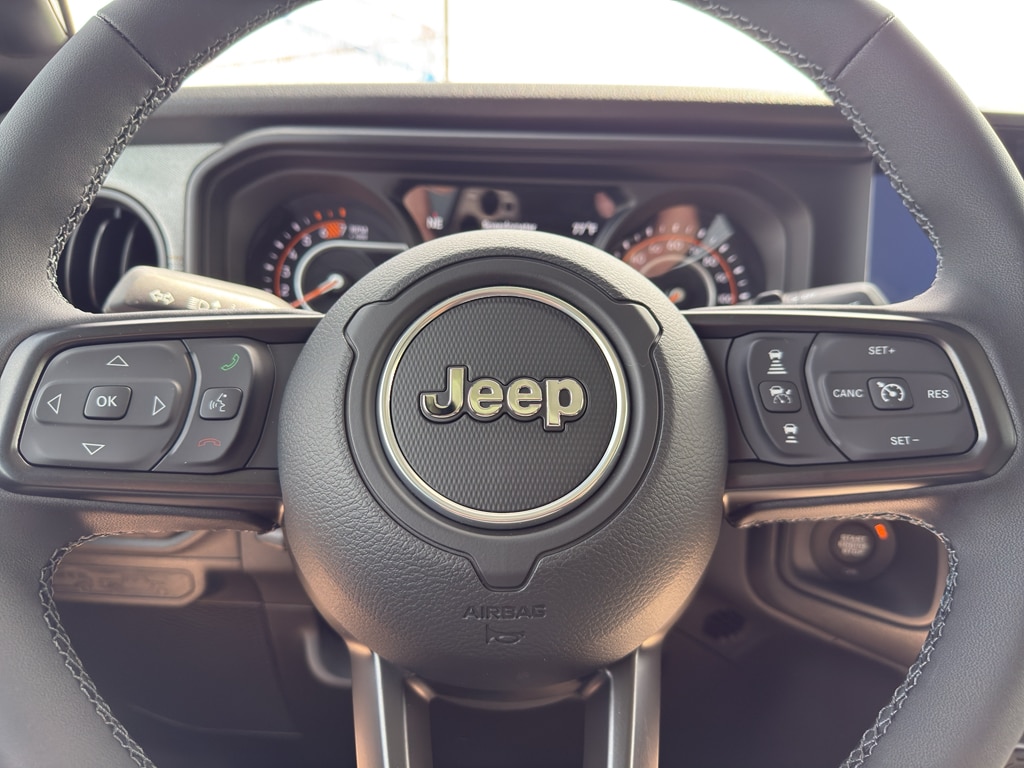 Start the vehicle from inside with remote start. The vehicle is pure luxury with a heated steering wheel. See what's behind you with the back up camera on this model. This model has automated speed control that adjusts to maintain a safe following distance, enhancing highway driving convenience. This model's Forward Collision Warning feature alerts drivers to potential front-end collisions. An off-road package is equipped on the vehicle. This 1/2 ton suv comes equipped with Android Auto for seamless smartphone integration on the road. Bluetooth technology is built into this 2025 Jeep Wrangler , keeping your hands on the steering wheel and your focus on the road. This Jeep Wrangler keeps you comfortable with Auto Climate. This model offers Apple CarPlay for seamless connectivity. When you encounter slick or muddy roads, you can engage the four wheel drive on this 1/2 ton suv and drive with confidence. Maintaining a stable interior temperature in this unit is easy with the climate control system.