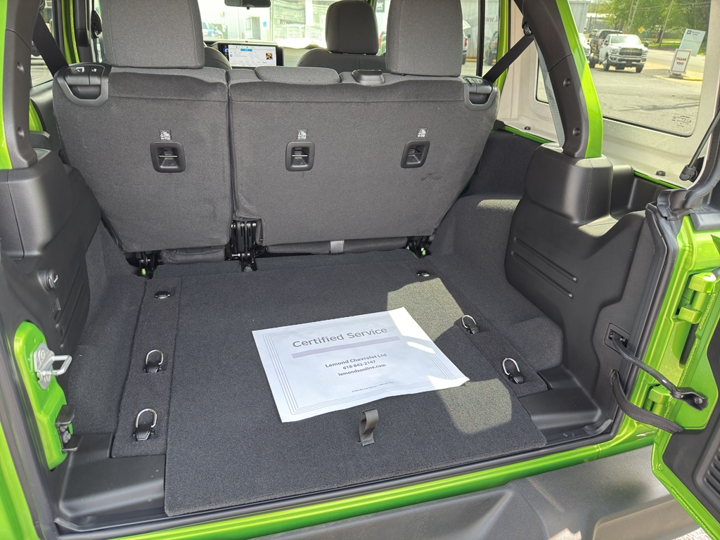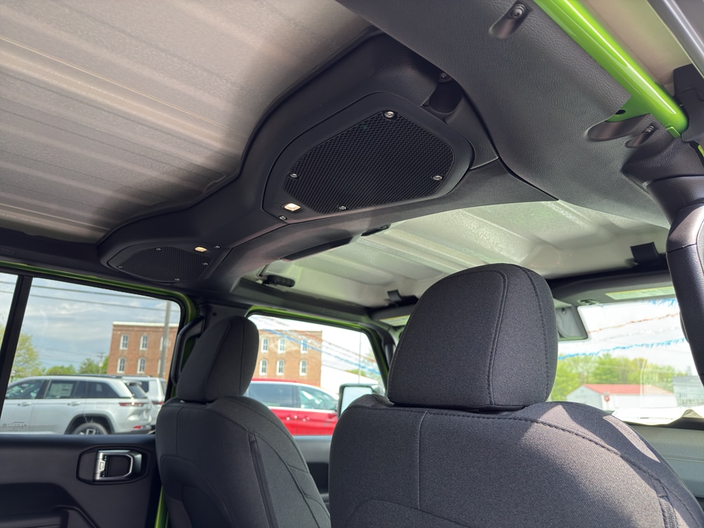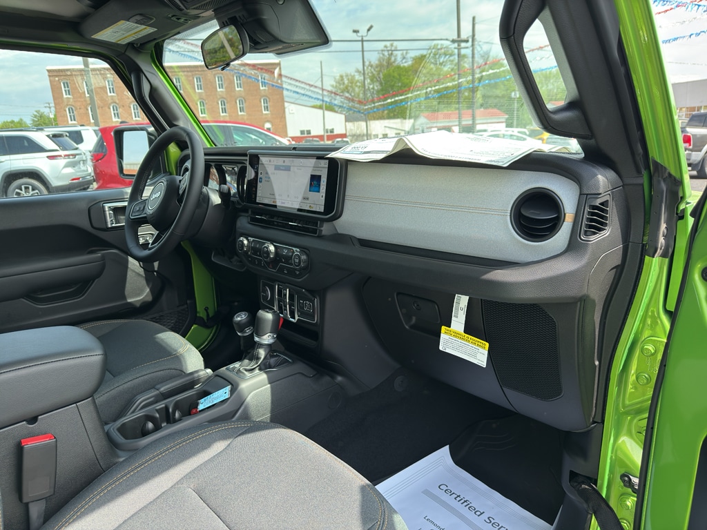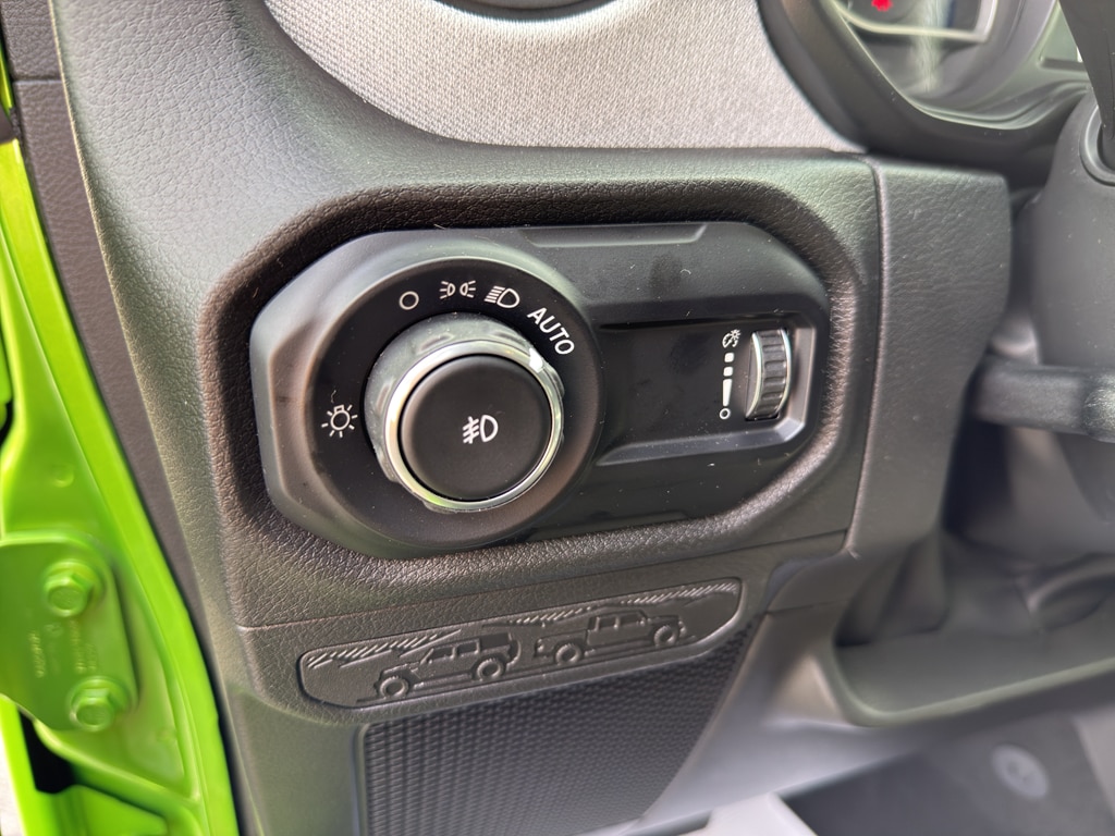 Convenience Group: Emergency/assistance Call; 2-Door Passive Entry. Front Door Locks; Remote Start System; Cluster 7.0 TFT Color Display; Universal Garage Door Opener; Heated Front Seats; Air Conditioning with Auto Temp Control; Heated Steering Wheel; Air Filtering. Quick Order Package 22S Sport S: Advanced Brake Assist; Power Heated Mirrors; Enhanced Adaptive Cruise Control; Automatic Headlamps; Deep Tint Sunscreen Windows; Corning Gorilla Glass; Premium Wrapped Steering Wheel; Security Alarm; Sun Visors with Illuminated Vanity Mirrors; Full Speed Forward Collision Warning Plus. Black 3-Piece Hard Top. 17 X 7.5 Machined with Black Pockets Wheels. Mojito Clearcoat. 245/75R17 All-Terrain Tires. MOPAR All-Weather Floor Mats. **Equipment listed is based on original vehicle build and subject to change. Please confirm the accuracy of the included equipment by calling the dealer prior to purchase.**