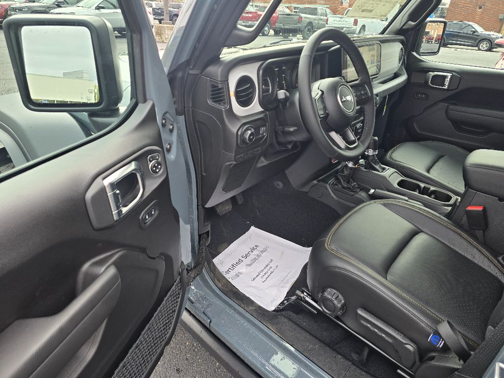 Convenience Group: Emergency/assistance Call; 2-Door Passive Entry. Front Door Locks; Remote Start System; Cluster 7.0 TFT Color Display; Universal Garage Door Opener; Heated Front Seats; Air Conditioning with Auto Temp Control; Heated Steering Wheel; Air Filtering. Xtreme 35 Tire Package: LT315/70R17C 113/110S Tires; Wheel Flare Extensions; MOPAR Tire Relocation Kit; Anti-Lock 4-Wheel Disc Perf Brakes; 17 X 8 Machined Wheels with Black Pockets; 4.56 Rear Axle Ratio; Injection Molded Black Rear Bumper; 97 MPH Vehicle Max Speed Calibration; 35 Tire Suspension; MOPAR Hinge-Gate Reinforcement; MOPAR Jack Spacer; Molded in Color Rubicon Highline Flare; 6. 250 lbs GVWR. Quick Order Package 24W Willys: 7 and 4 Pin Wiring Harness; Conventional Differential Front Axle; 4-Wheel Drive Swing Gate Decal; Black Grille; MOPAR All-Weather Floor Mats; Injection Molded Black Rear Bumper; Dana M210 Wide HD Tube Front Axle; Daytime Running Lamps LED Accents; Front LED Fog Lamps; LED Premium Reflector Headlamps; E-Locker Rear Axle; Corning Gorilla Glass; Security Alarm; Class II Receiver Hitch; Mold in Color Bumper with Gloss Black; Advanced Brake Assist; Automatic Headlamps; Deep Tint Sunscreen Windows; Off-Road Plus Mode; Willys Hood Decal; Full Speed Forward Collision Warning Plus; Rock Protection Sill Rails; 97 MPH Vehicle Max Speed Calibration; Power Heated Mirrors; Enhanced Adaptive Cruise Control; Auxiliary Switches; Dana M220 Wide Rear Axle; Molded in Color Rubicon Highline Flare; Premium Wrapped Steering Wheel; Sun Visors with Illuminated Vanity Mirrors. Dual Top Group: Premium Black Sunrider Soft Top with Dual Top Group; Black 3-Piece Hard Top. Black MOPAR Perforated Leather. Black 3-Piece Hard Top. Alpine Premium Audio System. MOPAR Hinge-Gate Reinforcement. Anvil Clearcoat. **Equipment listed is based on original vehicle build and subject to change. Please confirm the accuracy of the included equipment by calling the dealer prior to purchase.**