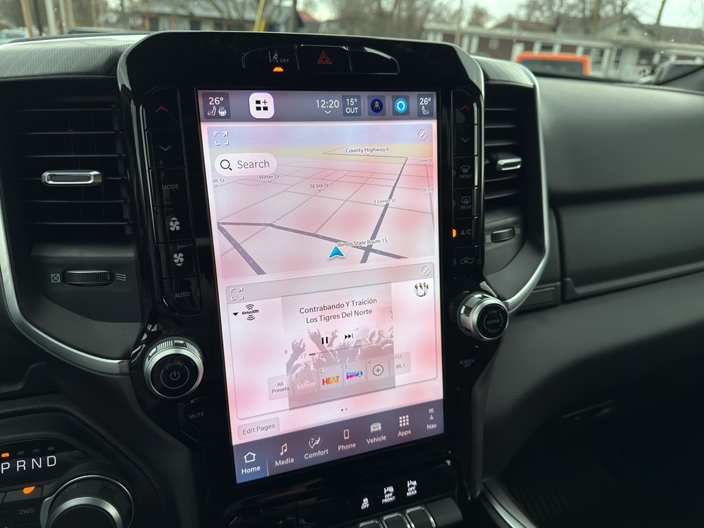with XM/Sirus Satellite Radio you are no longer restricted by poor quality local radio stations while driving this Ram 1500. Anywhere on the planet, you will have hundreds of digital stations to choose from. The vehicle has auto-adjust speed for safe following. You'll never again be lost in a crowded city or a country region with the navigation system on this model. Protect the Ram 1500 from unwanted accidents with a cutting edge backup camera system. The Ram 1500's Forward Collision Warning system alerts the driver to potential front-end collisions, enhancing safety. The Ram 1500 offers Android Auto for seamless smartphone integration. Start this unit from inside with remote start. This 1/2 ton pickup is pure luxury with a heated steering wheel. It features a hands-free Bluetooth phone system. The rear parking assist technology on the Ram 1500 will put you at ease when reversing. The system alerts you as you get closer to an obstruction.