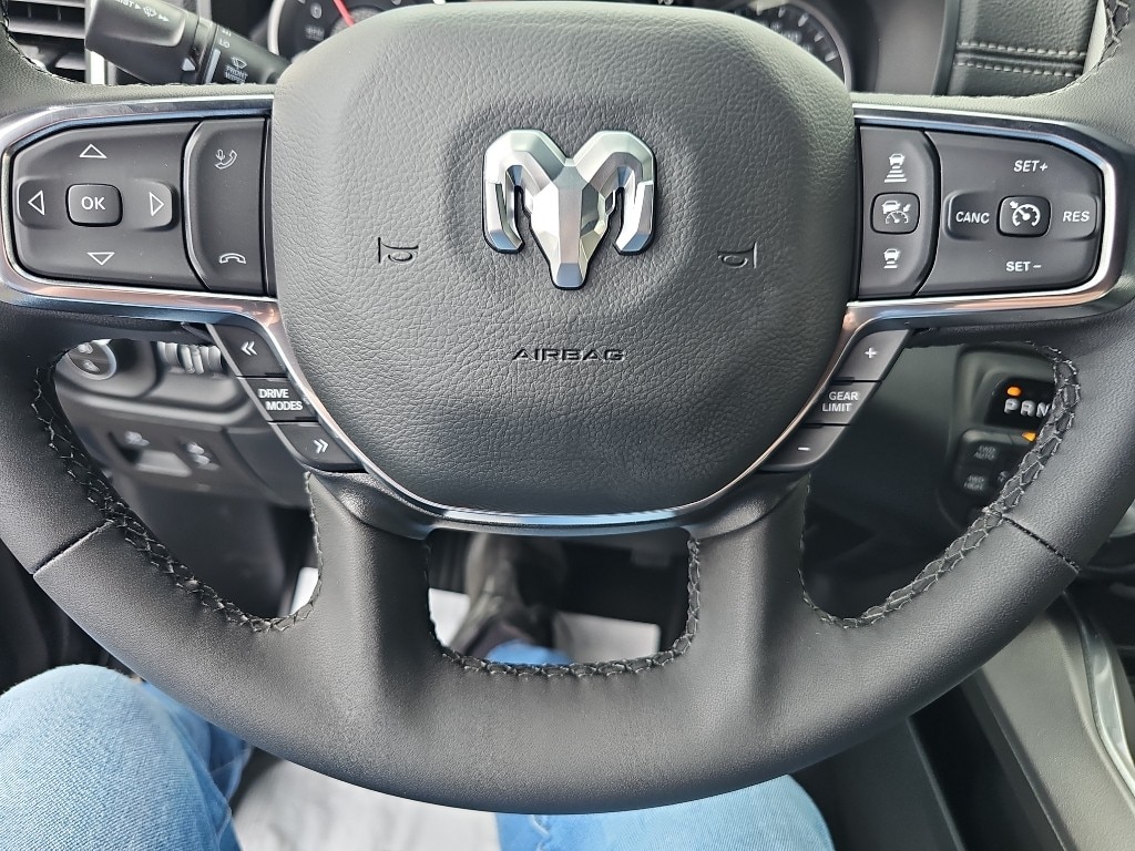 Protect this unit from unwanted accidents with a cutting edge backup camera system. This Ram 1500's Forward Collision Warning feature alerts drivers to potential front-end collisions. You'll never again be lost in a crowded city or a country region with the navigation system on this vehicle. Bluetooth technology is built into this 1/2 ton pickup, keeping your hands on the steering wheel and your focus on the road. The leather seats in the Ram 1500 are a must for buyers looking for comfort, durability, and style. An off-road package is installed on this vehicle so you are ready for your four-wheeling best. Apple CarPlay: Seamless smartphone integration for this 1/2 ton pickup - stay connected and entertained on the go! This unit is pure luxury with a heated steering wheel. This 1/2 ton pickup has auto-adjust speed for safe following. This Ram 1500 offers Android Auto for seamless smartphone integration.
