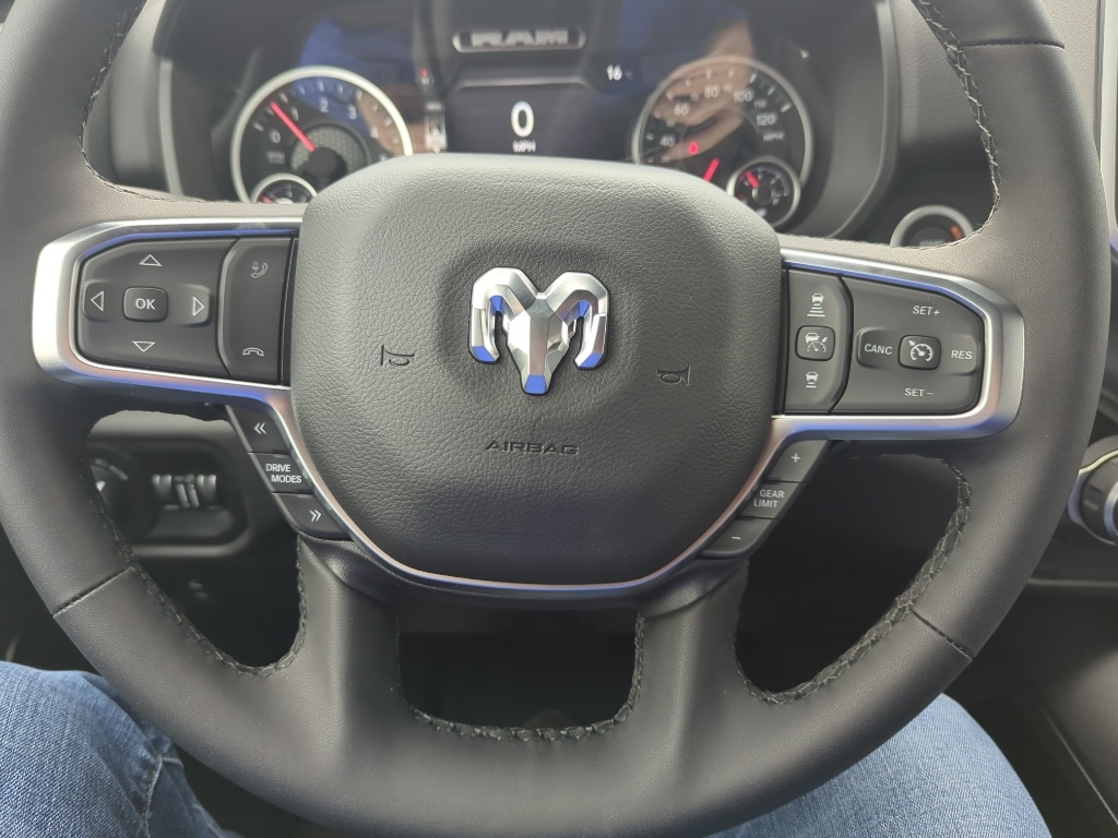 Quick Order Package 27Z Big Horn. Big Horn Level 2 Equipment Group: Google Android Auto; SiriusXM Radio Service; USB Host Flip; Power Adjustable Pedals; Leather Wrapped Steering Wheel; Integrated Voice Command with Bluetooth; 12 Touchscreen Display; Glove Box Lamp; Auto Power-Folding Mirrors; 115V Auxiliary Rear Power Outlet; Media Hub with 2 Charge Only USBs; Heated Front Seats; Security Alarm; Black Premium Power Mirrors; Apple CarPlay; Premium Overhead Console; 9 Amplified Speakers with Subwoofer; Disassociated Touchscreen Display; Body Color Fender Flares; Remote Tailgate Release; 115V Auxiliary Power Outlet; LED Dome Lamp with On/off Switch; Universal Garage Door Opener; 2nd Row in Floor Storage Bins; Sun Visors with Illuminated Vanity Mirrors; LED Footwell Lighting; Rear Window Defroster; Integrated Center Stack Radio; Rear View Auto Dim Mirror; Rear Power Sliding Window; Connectivity - US/Canada; GPS Navigation; 4G LTE Wi-Fi Hot Spot; GPS Antenna Input; Overhead LED Lamps; 20 X 9 Aluminum Chrome Clad Wheels; Exterior Mirrors with Heating Element; Auto Dim Exterior Driver Mirror; SiriusXM with 360L; Global Telematics Box Module; Connected Travel and Traffic Services; Heated Steering Wheel; Black Exterior Mirrors; Configurable Drive Mode; 400W Inverter; HD Radio; Deluxe Cloth Bucket Seats; Uconnect 5 Navigation with 12.0 Display Radio; Exterior Mirrors with Supplemental Signals; Steering Wheel Mounted Audio Controls; Exterior Mirrors Courtesy Lamps; Air Conditioning ATC with Dual Zone Control; Cluster 7.0 TFT Color Display; Convex Wide-Angle Exterior Mirror Insert. Quick Order Package 23Z Big Horn. 20 X 9 Aluminum Chrome Clad Wheels. 9 Amplified Speakers with Subwoofer. Anti-Spin Differential Rear Axle. 33 Gallon Fuel Tank. Trailer Brake Control. Forged Blue Metallic. MOPAR Front and Rear Rubber Floor Mats. 3.92 Rear Axle Ratio. **Equipment listed is based on original vehicle build and subject to change. Please confirm the accuracy of the included equipment by calling the dealer prior to purchase.**