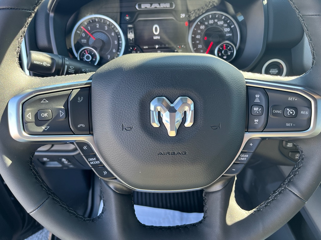 Quick Order Package 27Z Big Horn. Big Horn Level 2 Equipment Group: Google Android Auto; SiriusXM Radio Service; USB Host Flip; Power Adjustable Pedals; Leather Wrapped Steering Wheel; Integrated Voice Command with Bluetooth; 12 Touchscreen Display; Glove Box Lamp; Auto Power-Folding Mirrors; 115V Auxiliary Rear Power Outlet; Media Hub with 2 Charge Only USBs; Heated Front Seats; Security Alarm; Black Premium Power Mirrors; Apple CarPlay; Premium Overhead Console; 9 Amplified Speakers with Subwoofer; Disassociated Touchscreen Display; Body Color Fender Flares; Remote Tailgate Release; 115V Auxiliary Power Outlet; LED Dome Lamp with On/off Switch; Universal Garage Door Opener; 2nd Row in Floor Storage Bins; Sun Visors with Illuminated Vanity Mirrors; LED Footwell Lighting; Rear Window Defroster; Integrated Center Stack Radio; Rear View Auto Dim Mirror; Rear Power Sliding Window; Connectivity - US/Canada; GPS Navigation; 4G LTE Wi-Fi Hot Spot; GPS Antenna Input; Overhead LED Lamps; Exterior Mirrors with Heating Element; Auto Dim Exterior Driver Mirror; SiriusXM with 360L; Global Telematics Box Module; Connected Travel and Traffic Services; Heated Steering Wheel; Configurable Drive Mode; 400W Inverter; HD Radio; Deluxe Cloth Bucket Seats; Uconnect 5 Navigation with 12.0 Display Radio; Exterior Mirrors with Supplemental Signals; Steering Wheel Mounted Audio Controls; Exterior Mirrors Courtesy Lamps; Air Conditioning ATC with Dual Zone Control; Cluster 7.0 TFT Color Display; Convex Wide-Angle Exterior Mirror Insert. Night Edition: 275/55R20 OWL All Season Tires; Accent Color Premium Power Mirrors; Exterior Mirrors with Supplemental Signals; Black Headlamp Bezels; Exterior Mirrors Courtesy Lamps; Grille Black Surround Black Mesh; Auto Power-Folding Mirrors; Exterior Mirrors with Heating Element; 20 X 9.0 Aluminum Painted Clad Wheels; Auto Dim Exterior Driver Mirror; Black Exterior Truck Badging; Anti-Spin Differential Rear Axle; Accent Color Door Handles; Accent Color Tailgate Handle; Black Interior Accents; Dual Exhaust with Black Tips; Body Color Front Bumper; Convex Wide-Angle Exterior Mirror Insert; Body Color Rear Bumper with Step Pads; Black Tail Lamp Bezels; RAM Grille Badge - Black; Black Painted Exterior Mirrors Caps. Bed Utility Group: MOPAR Spray in Bedliner; MOPAR Deployable Bed Step; MOPAR 4 Adjustable Cargo Tie-Down Hooks; Pick-Up Box Lighting; Exterior 115V AC Outlet. Quick Order Package 23Z Big Horn. 9 Amplified Speakers with Subwoofer. Anti-Spin Differential Rear Axle. 33 Gallon Fuel Tank. Trailer Brake Control. Diamond Black Crystal PC. MOPAR Front and Rear Rubber Floor Mats. 3.92 Rear Axle Ratio. **Equipment listed is based on original vehicle build and subject to change. Please confirm the accuracy of the included equipment by calling the dealer prior to purchase.**