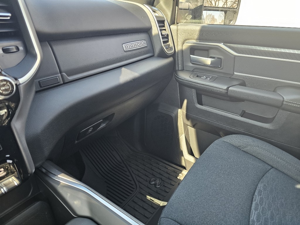 Quick Order Package 2UZ Big Horn. Night Edition: Firestone Brand Tires; Gloss Black Nostrils/mic Black Grille; LT285/60R20E OWL On/off Road Tires; Black Exterior Truck Badging; 20 X 8.0 Black Painted Aluminum Wheels; Body Color Grille-Surround; Black Interior Accents; Black Wheel Center Hub; Painted Front Bumper; Painted Rear Bumper. Big Horn Level 1 Plus Equipment Group: Google Android Auto; SiriusXM Radio Service; For Details. Visit DriveUconnect.com; For More Info. Call 800-643-2112; Integrated Voice Command with Bluetooth; Emergency Vehicle Alert System (EVAS); 12 Touchscreen Display; Glove Box Lamp; Auto Power-Folding Mirrors; Footwell Courtesy Lamp; Anti-Spin Differential Rear Axle; Mirror Running Lights; MOPAR Deployable Bed Step; Alexa Built-In; Apple CarPlay; Power-Adjustable Convex Aux Mirrors; Forward and Reverse Utility Lights; Locking Lower Glove Box; Remote Start System; 9 Alpine Speakers with Subwoofer; Disassociated Touchscreen Display; Dual Glove Boxes; 2nd Row in Floor Storage Bins; Rear View Auto Dim Mirror; Rear Dome with On/off Switch Lamp; LED Bed Lighting; Connectivity - US/Canada; GPS Navigation; 4G LTE Wi-Fi Hot Spot; GPS Antenna Input; Exterior Mirrors with Heating Element; SiriusXM with 360L; Global Telematics Box Module; Connected Travel and Traffic Services; Foam Bottle Insert (door Trim Panel); Black Exterior Mirrors; Big Horn Instrument Panel Badge; Off-Road Info Pages; Selectable Tire Fill Alert; Trailer Tow Pages; HD Radio; Uconnect 5 Navigation with 12.0 Display Radio; Power Heated Folding Telescopic Mirrors; Exterior Mirrors with Supplemental Signals; Steering Wheel Mounted Audio Controls; Exterior Mirrors Courtesy Lamps; Air Conditioning ATC with Dual Zone Control; MOPAR Spray in Bedliner; Power Adjust Mirrors; Luxury Steering Wheel; Power Telescoping Mirrors. Heated Seats and Wheel Group: Heated Front Seats; Heated Steering Wheel. Anti-Spin Differential Rear Axle. Premium Cloth Bucket Seats. Remote Start System. MOPAR Front and Rear Rubber Floor Mats. Clearance Lamps. Power 2-Way Driver Lumbar Adjust. **Equipment listed is based on original vehicle build and subject to change. Please confirm the accuracy of the included equipment by calling the dealer prior to purchase.**