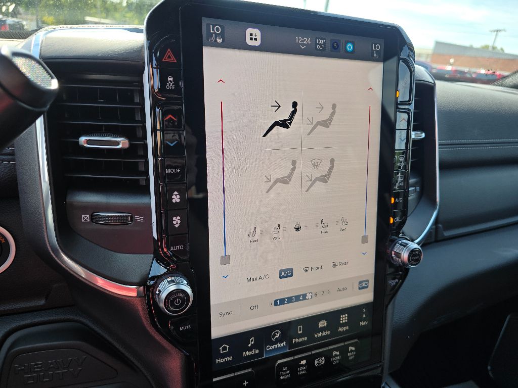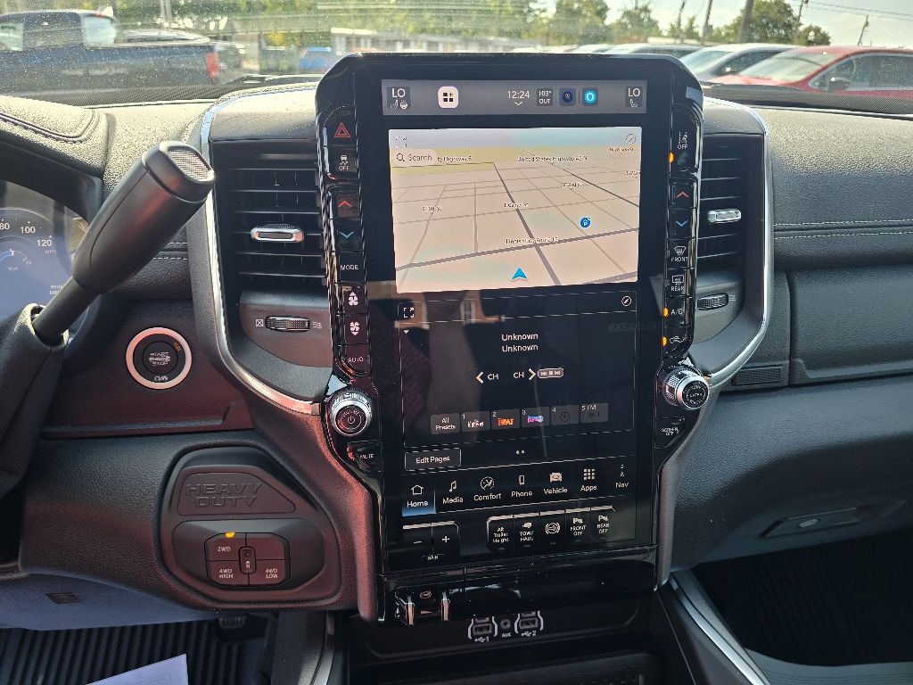 Quick Order Package 24H Laramie. Max Tow Package: Auto Level Rear Air Suspension; 5th Wheel/gooseneck Towing Prep Group. Towing Technology Group: Center Stop Lamp with Cargo View Camera; Surround View Camera System; Trailer Tire Pressure Monitoring System; Trailer Reverse Guidance. Laramie Level 2 Plus Equipment Group: Google Android Auto; SiriusXM Radio Service; Power Adjustable Pedals with Memory; For Details Visit DriveUconnect.com; For More Info. Call 800-643-2112; Integrated Voice Command with Bluetooth; Emergency Vehicle Alert System (EVAS); Power Deployable Running Boards; Auto Power-Folding Mirrors; Drowsy Driver Detection; Mirror Running Lights; MOPAR Deployable Bed Step; Alexa Built-In; Apple CarPlay; Power-Adjustable Convex Aux Mirrors; Active Lane Management System; Forward and Reverse Utility Lights; Disassociated Touchscreen Display; Remote Tailgate Release; 17 Speaker Harman/kardon Premium Sound; 2nd Row in Floor Storage Bins; Center Stop Lamp with Cargo View Camera; Rain Sensitive Windshield Wipers; LED Bed Lighting; Connectivity - US/Canada; Traffic Sign Recognition; GPS Navigation; 4G LTE Wi-Fi Hot Spot; Adaptive Steering System; GPS Antenna Input; Exterior Mirrors with Heating Element; Auto Dimming Exterior Mirrors; SiriusXM with 360L; Global Telematics Box Module; Connected Travel and Traffic Services; Foam Bottle Insert (door Trim Panel); Off-Road Information Pages; Selectable Tire Fill Alert; Trailer Tow Pages; Leather Trimmed Bucket Seats; HD Radio; 14.4 Touchscreen Display; Power Heat Fold Memory Telescopic Mirrors; Exterior Mirrors with Supplemental Signals; Exterior Mirrors Courtesy Lamps; Uconnect 5 Nav with 14.4 Display; MOPAR Spray in Bedliner; Auto High Beam Headlamp Control; Chrome Exterior Mirrors; Exterior Mirrors with Memory; Power Adjust Mirrors; Power Telescoping Mirrors; Auto Dimming Exterior Passenger Mirror; Auto Adjust in Reverse Exterior Mirrors. Chrome Bumper Package: Bright Rear Bumper; Bright Front Bumper. Dual Rear Wheels: Clearance Lamps; LT235/80R17E BSW All Season Tires; 17 Steel Spare Wheel; Box and Rear Fender Clearance Lamps; Center Hub; 6000# Front Axle with Hub Extension; 17 X 6.0 Polished Aluminum Wheels; Nexen Brand Tires; 14. 000 Lb GVWR. Auto Level Rear Air Suspension. Power Deployable Running Boards. 5th Wheel/gooseneck Towing Prep Group. Leather Trimmed Bucket Seats. Center Stop Lamp with Cargo View Camera. 50 Gallon Fuel Tank. MOPAR Front and Rear Rubber Floor Mats. Clearance Lamps. **Equipment listed is based on original vehicle build and subject to change. Please confirm the accuracy of the included equipment by calling the dealer prior to purchase.**